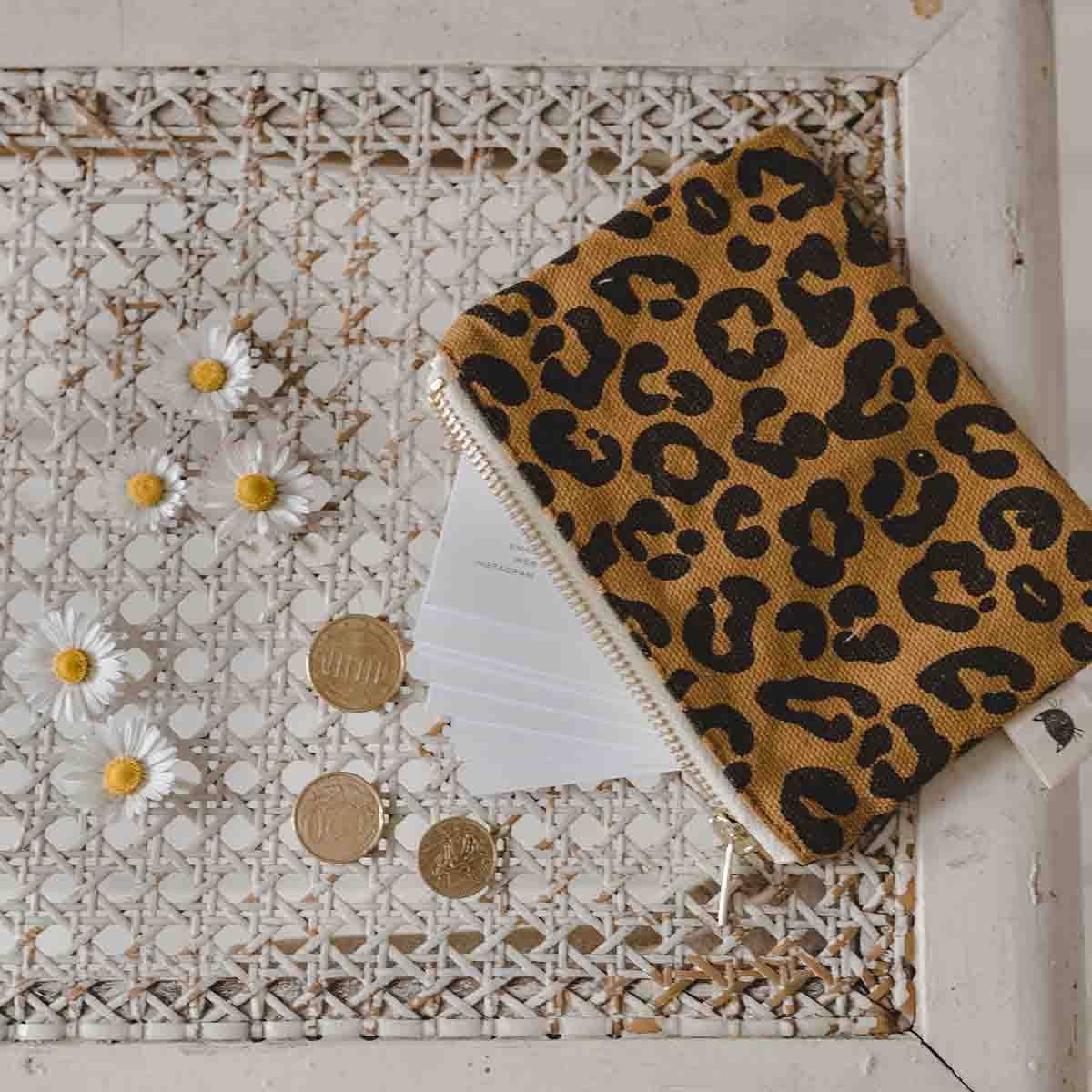 Diese kleine Geldbörse im angesagten Leopardenlook passt einfach zu jeder Mama. Hergestellt zu 100% aus Baumwolle und nachhaltig in Portugal produziert.